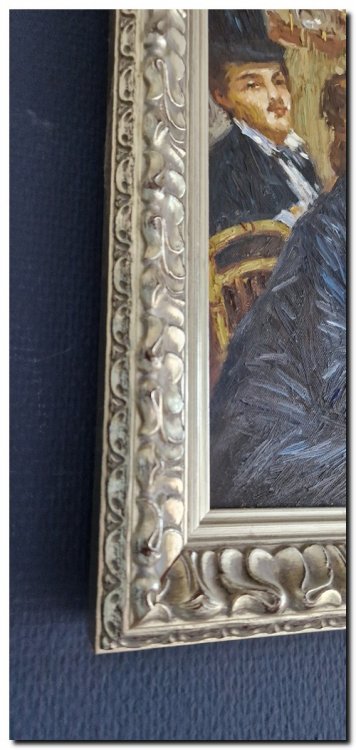 Een elegante, handgeschilderde reproductie met barokke lijst — ideaal voor liefhebbers van impressionistische kunst en sfeervolle interieurs.